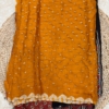 The hallmark of the Ajrakh Bandini saree lies in its vibrant, geometric patterns inspired by centuries-old techniques of Ajrakh block printing and Bandini tie-dye. The fusion of these two iconic styles results in a visually captivating design, rich in heritage. Each saree is meticulously handwoven, showcasing extraordinary precision and artistry, with delicate embroidery accents that elevate its beauty to new heights.