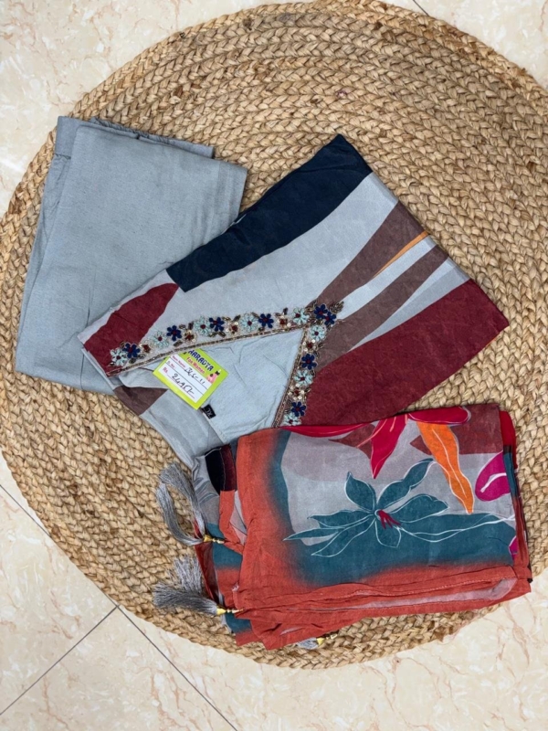 Design: Elegant hand-embroidery inspired by traditional Indian sarees